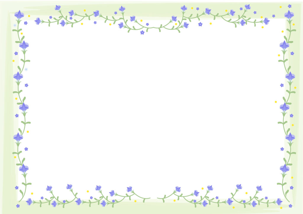 薄いグリーンのフレームに小さな紫色のりんどうの花が連なって咲いたように描かれた飾り枠のテンプレートになります。グリーンと紫色の組み合わせが可愛く、秋の爽やかさを感じることができるデザインです。