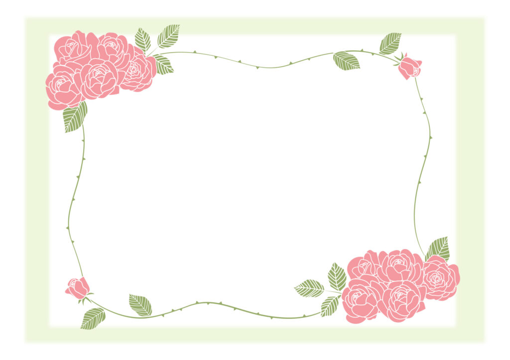 コーナーにバラの花を集め、ツルをフレームに見立てたおしゃれなテンプレート。薄いグリーンとピンク系の薔薇の色に統一感があり美しいデザインです。5月に送るお手紙の便箋として利用したり、感謝の気持ちを込めたいお手紙の便箋としておすすめします。