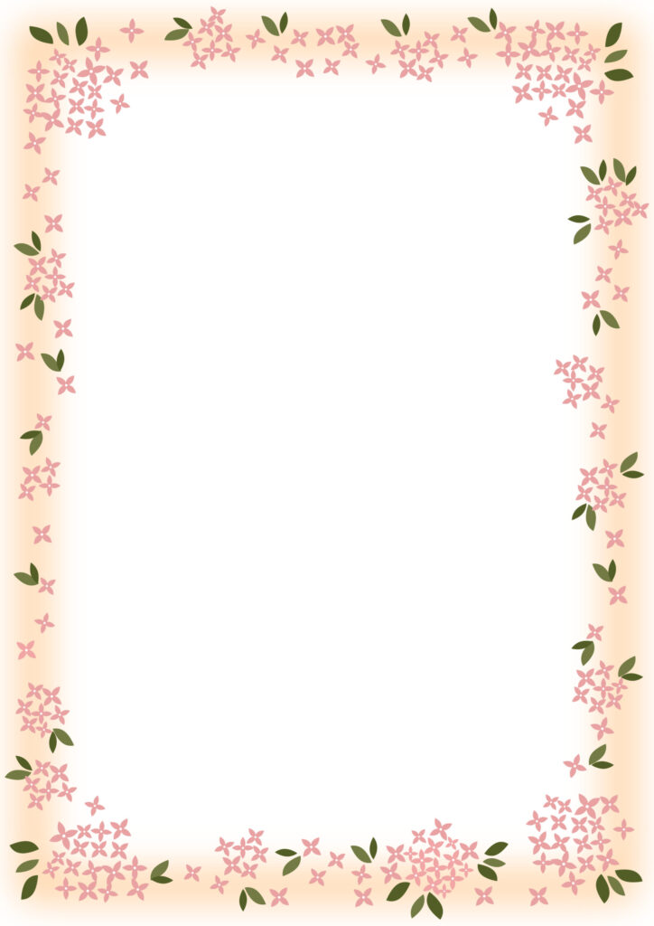 ピンク色の小花(ブバルディア)が可愛いフレーム!優しい印象のイラストデザインのテンプレート素材となりブバルディアは周年の花となりますので、時期や季節を問わずに利用する事が出来ます。花束などを送る時のメッセージカードや手紙のデザインなどにもおすすめの素材です。