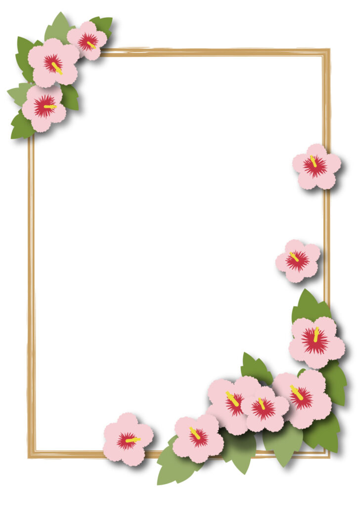 ムクゲの花がデザインされた可愛いフレーム!シンプルな枠でイラストでおしゃれに描かれた素材となり、花が咲く季節は7月から10月前半となりますので、その時期に社内で発行する会報や学校でのプリントのデザインにおすすめです。ダウンロード後に利用可能。