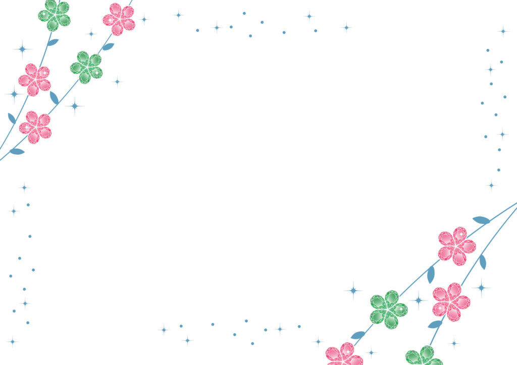 キラキラかわいい宝石のイラスト付きメッセージカードのフレームに使えるかわいいデザインのテンプレート!10月の誕生石「トルマリン」赤と緑の花がかわいい♪お友達や会社の上司、先輩に送るバースデーカードの飾り枠にいかがでしょうか。