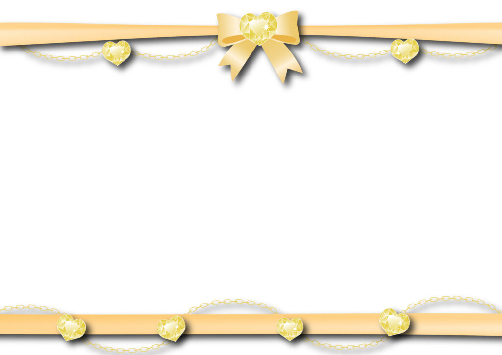 黄色のリボンと黄色の宝石が印象的なフレームテンプレートです。宝石は11月の誕生石でもある「シトリン」をイメージして描いており、この宝石には繁栄や希望といった意味があり、カラーや言葉からも明るいイメージと運気が上がりそうな前向きな気持になれるフレームデザインです。人気の宝石のイラスト入りテンプレートで、お知らせやご案内作りにお役立て下さい。