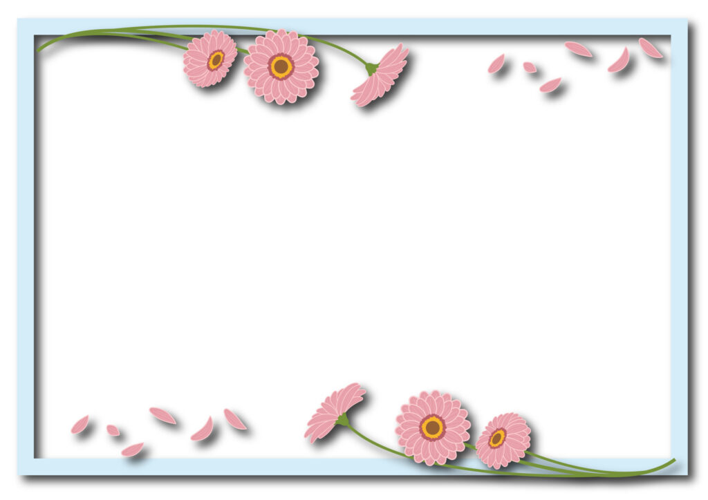 水色の横長フレームにピンクのガーベラをシンプルにイラストで描いた「かわいい」素材がダウンロード出来ます。シンプルなデザインですが、ガーベラが華やかにデザインされており、手紙やメッセージカードなどにも最適です。