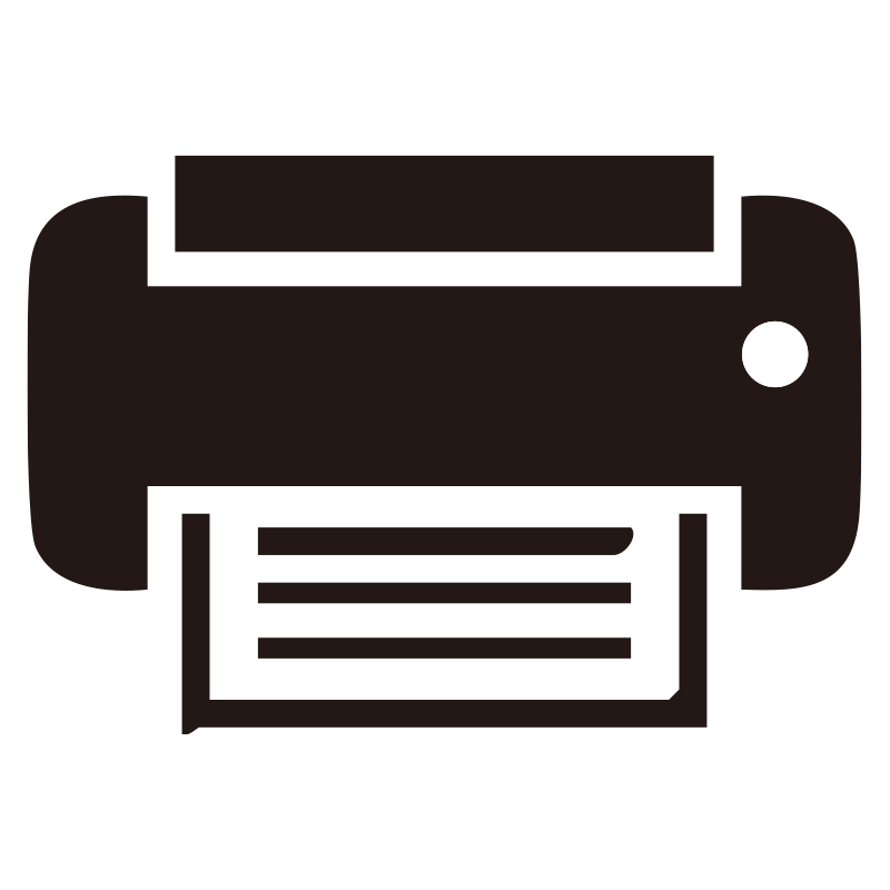 書類が出力されている様子を描いた、インクジェットプリンターのシルエットアイコンです。オフィス機器、印刷、資料作成、年賀状印刷など、家庭や職場でのプリントアウト作