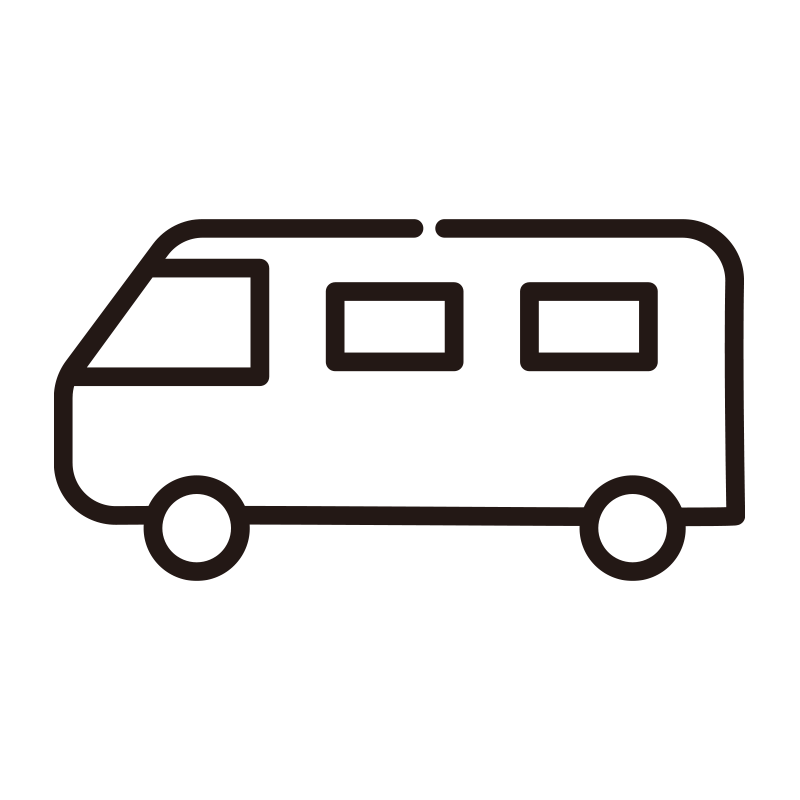 ボックスタイプのワゴン車やバンを横から描いた、シンプルな車のアイコンイラストです。家族でのドライブ、荷物の運搬、送迎など幅広い用途をイメージでき、交通安全のマップや、駐車場の案内表示、カー用品の紹介などに汎用的に使えます。