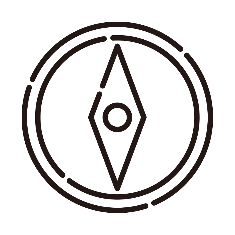 南北を指し示す菱形の針が特徴的な、方位磁針(コンパス)のアイコンイラストです。ハイキングや登山の道しるべとしての用途はもちろん、ビジネスにおける「指針」や「進路」といった抽象的な概念を表すメタファーとしても効果的に使用できます。