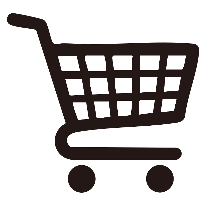 スーパーマーケットなどで使われる、網状の買い物カゴを載せたカートのアイコンイラストです。ECサイトの「カートに入れる」ボタン、通販の案内、スーパーのチラシなど、