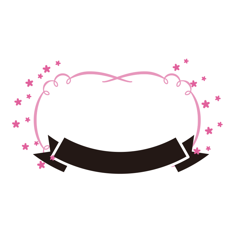 足元に桜の花を敷き詰め、中央にリボンを配した縦長の装飾フレームです。名前入れや短いキャッチコピーを入れるのに適したレイアウトで、春の新生活応援キャンペーンや、入学・入社式の記念フォトフレームとしても活躍します。明るく前向きな印象を与える、春