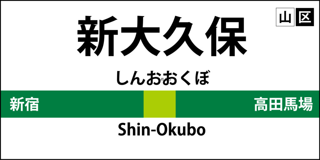 山手線の駅名標「新大久保駅」のアイコンです。
