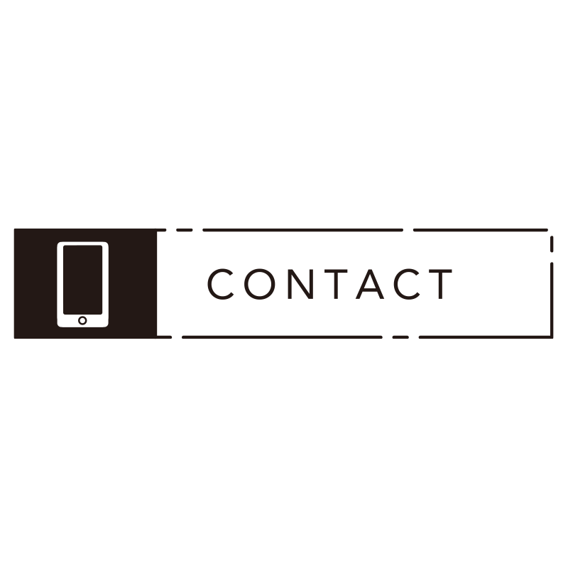 スマートフォンのアイコンと「CONTACT」のタイポグラフィを組み合わせた、お問い合わせ用のバナー・ボタン素材です。シンプルながらも枠線の強弱がデザインのアクセントになっており、Webサイトのコンタクトページへの誘導リンクや、名刺・パンフレットの連絡先表示に便利です。