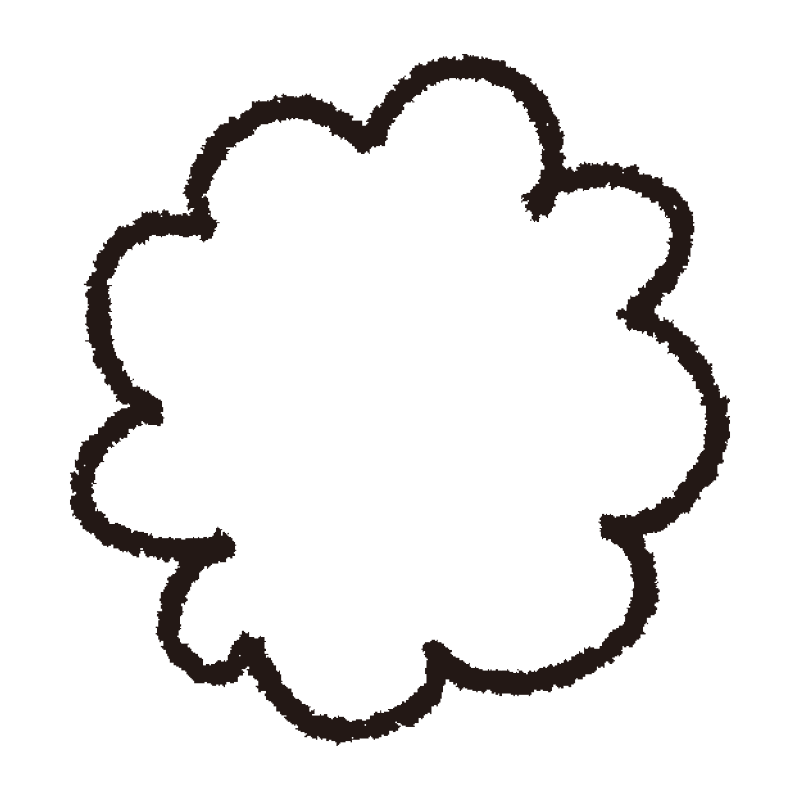 もこもことした雲のような形が可愛らしい、手書き風のフレーム素材です。メッセージカードの枠や、写真の装飾、強調したいテキストの背景として重宝します。太めの線で描かれているため、視認性が高く、親しみやすい印象を与えます。
