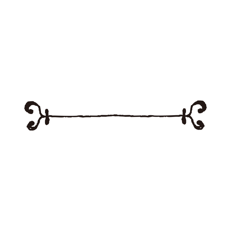 中央のラインの両端に、くるんとした曲線を描くアンティーク調の装飾を施した飾り罫線(ディバイダー)です。セクションの区切りやタイトルの上下に配置することで、デザインに上品さとエレガントな印象を添えることができます。結婚式の招待状、カフェのメニュー、落ち着いた雰囲気のブログ記事の装飾に便利です。