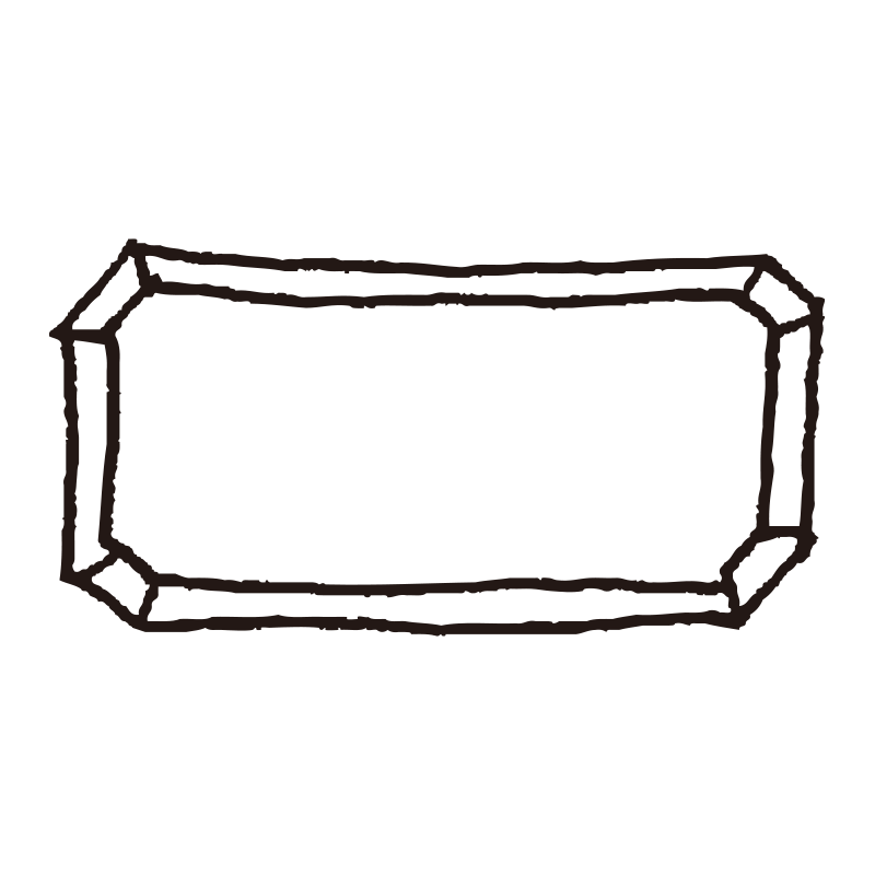 厚みのある3Dブロック風の長方形フレームです 。白抜きの前面と黒い側面のコントラストが、キャッチコピーや見出しに強いインパクトを与えます 。飲食店のメニュー、イベントのタイトル枠、SNSの告知バナーなど、情報を目立たせたい場面で非常に効果的