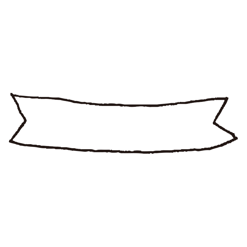 ゆるやかな曲線を描くリボン型のフレームに、可愛らしいドットの装飾を添えた手書き風素材です。アナログ感のあるラフな線が、デザインに温かみと親しみやすさをプラスします。タイトルや見出しの背景、メッセージカードの装飾、写真のキャプション枠など、女