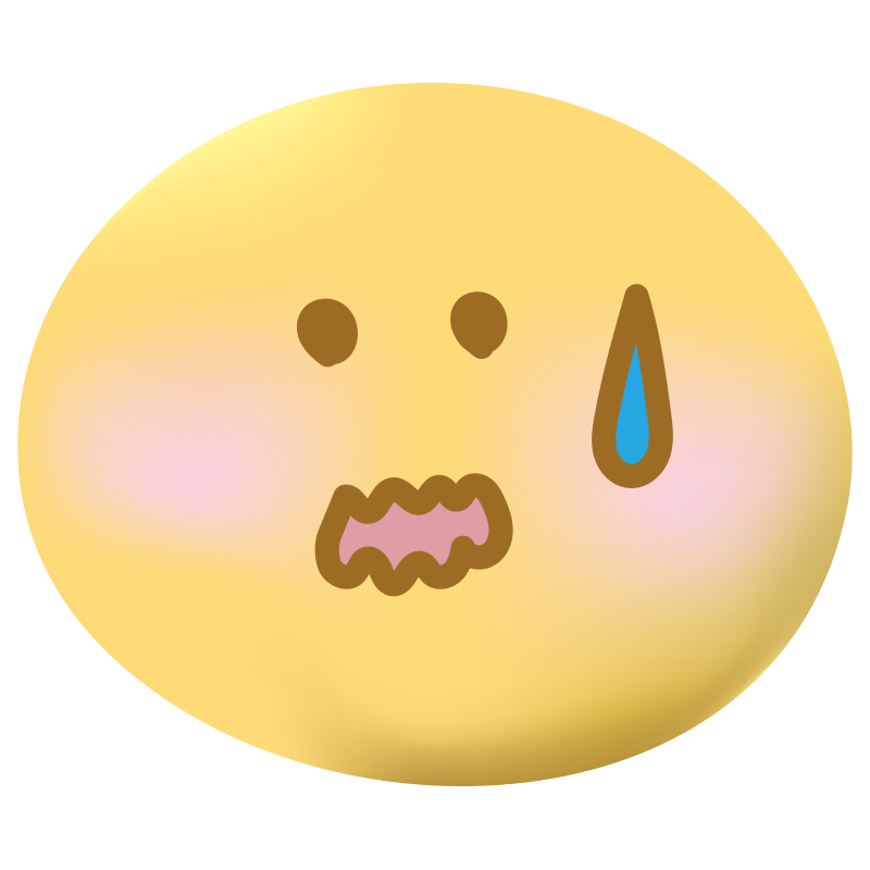 片目から一筋の涙を流し、悲しみに耐えているような表情の黄色い丸顔キャラクターです。寂しさ、後悔、あるいは感動の涙など、切ない感情を伝えるためのアイコンとして最適です。ピンク色の頬が弱々しさを引き立てており、エモーショナルな文章や、ユーザーの