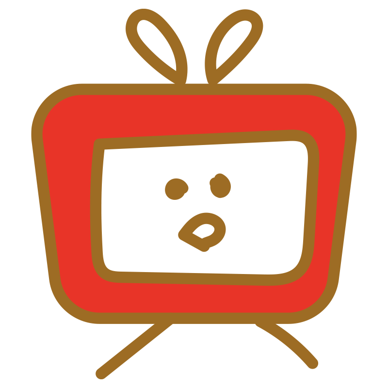 真っ赤なボディにアンテナが付いた、レトロなブラウン管テレビを擬人化したキャラクターイラストです。画面の中に可愛らしい顔が描かれており、メディア関連のブログ、動画