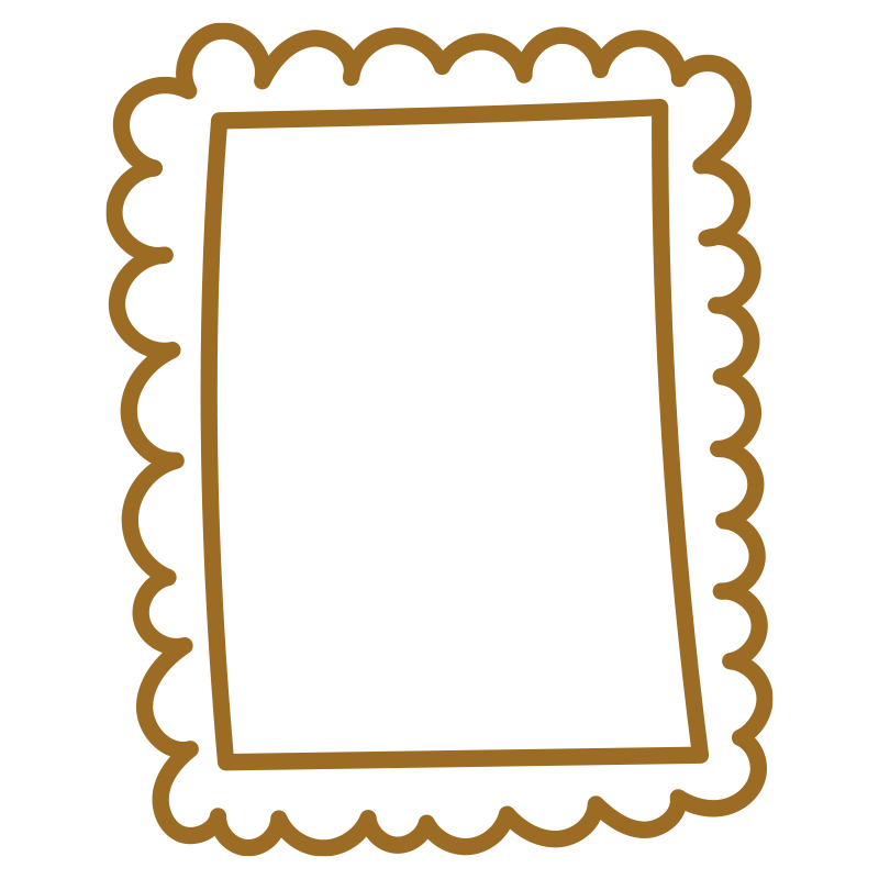 切手の縁のようなギザギザとした「もくもく」した形が特徴的な、縦長のデザインフレームです。中にお気に入りの写真やイラストを配置するだけで、手紙やポストカードのよう