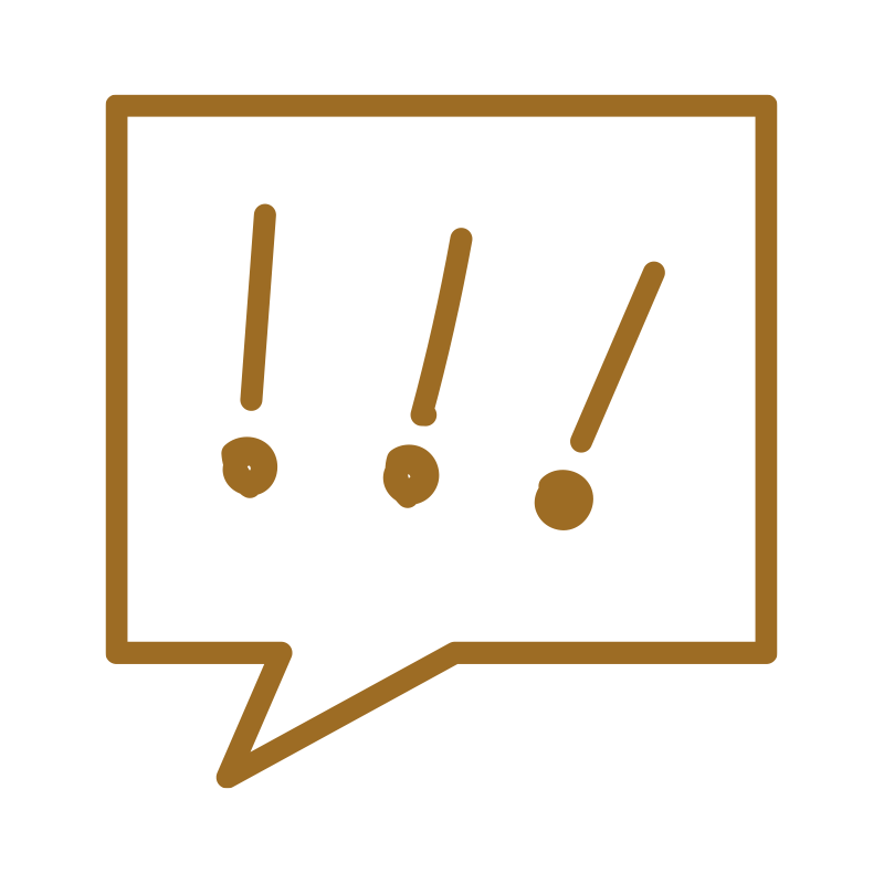 四角い吹き出しの中に3つのびっくりマークが並んだ、強い驚きや主張を伝える手描きイラスト素材です。白背景に茶色の太めの枠線がシンプルながらもおしゃれで、YouTubeのテロップやブログのワンポイントなど、感情を豊かに表現したい場面に最適です。