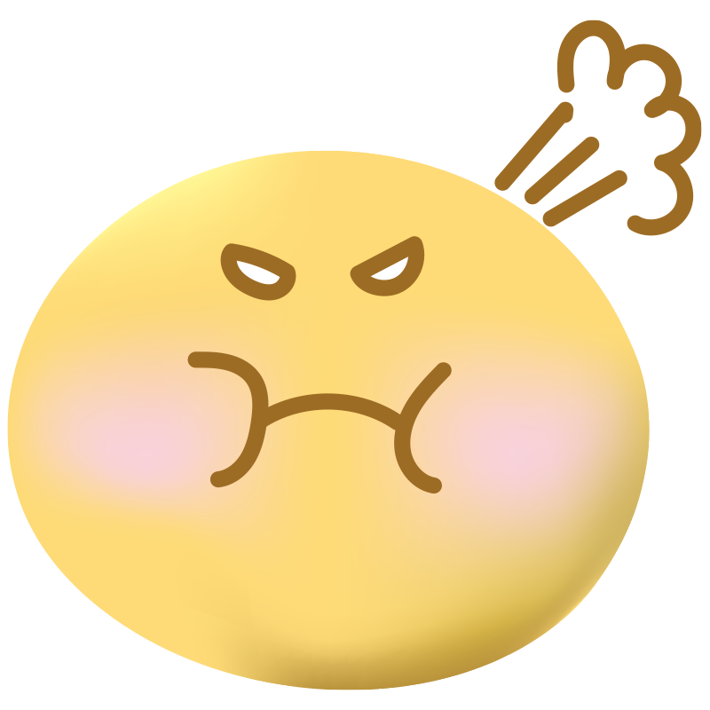 目をバツ印のように閉じて、大きな口を開けて嫌がったり叫んだりしている表情のイラスト素材です。拒絶の意思や、強いストレス、パニック状態をユーモラスに描いています。インパクトが強いため、注目を集めたい箇所のアイコンとして効果的です。
