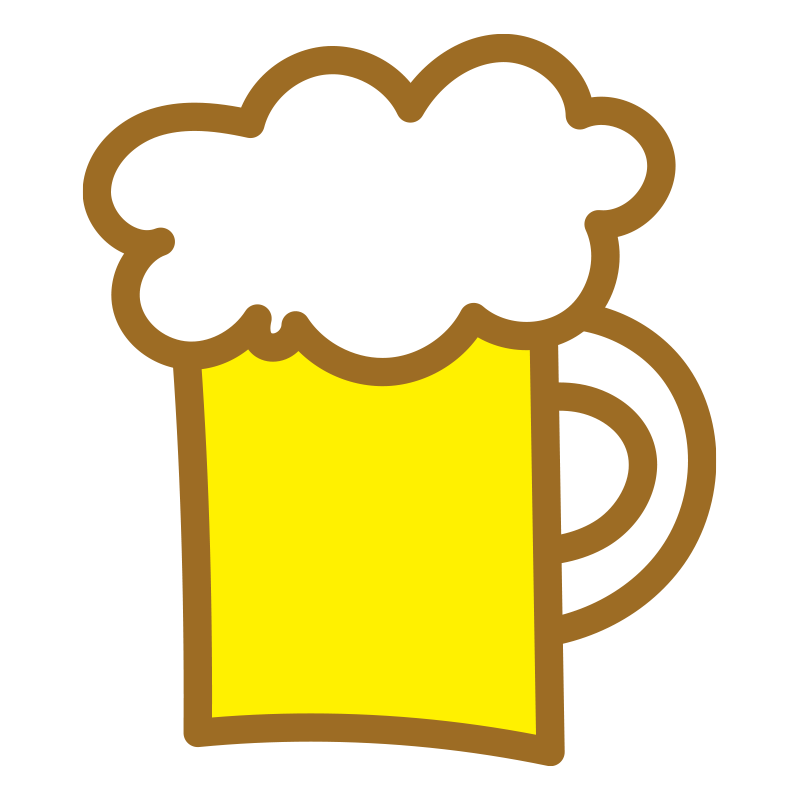 ジョッキから溢れんばかりの白い泡が乗った、黄金色のビールのイラスト素材です。飲み会や忘年会、晩酌、おつまみ特集、パブ、居酒屋などの広告・チラシデザインにぴったりです。見ているだけで喉が鳴るような、明るく楽しい雰囲気を演出します。