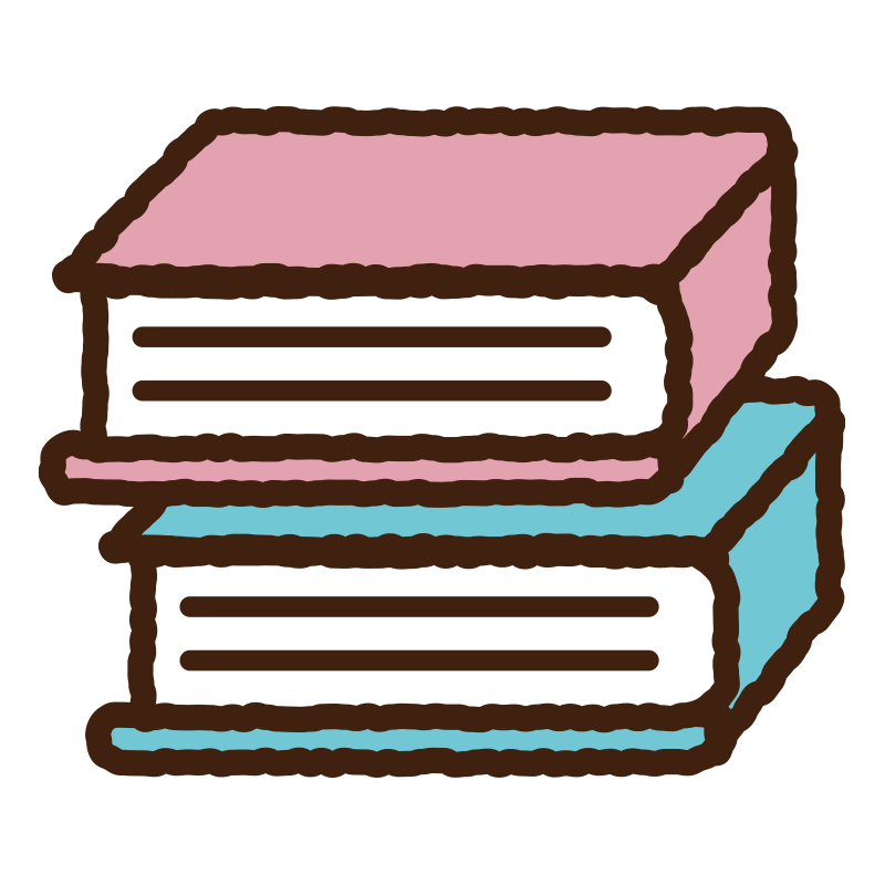 ピンクと水色の本が2冊積み重なった、読書や学習をイメージさせるイラストです。「積読(つんどく)」の状態や、図書室、勉強、知識の積み重ねを表現するのに適しています。温かみのある太い主線が特徴で、教育ブログのアイキャッチや、図書館のポスター、趣味の読書に関するコンテンツなど、日常の学習風景を彩る素材として便利です。
