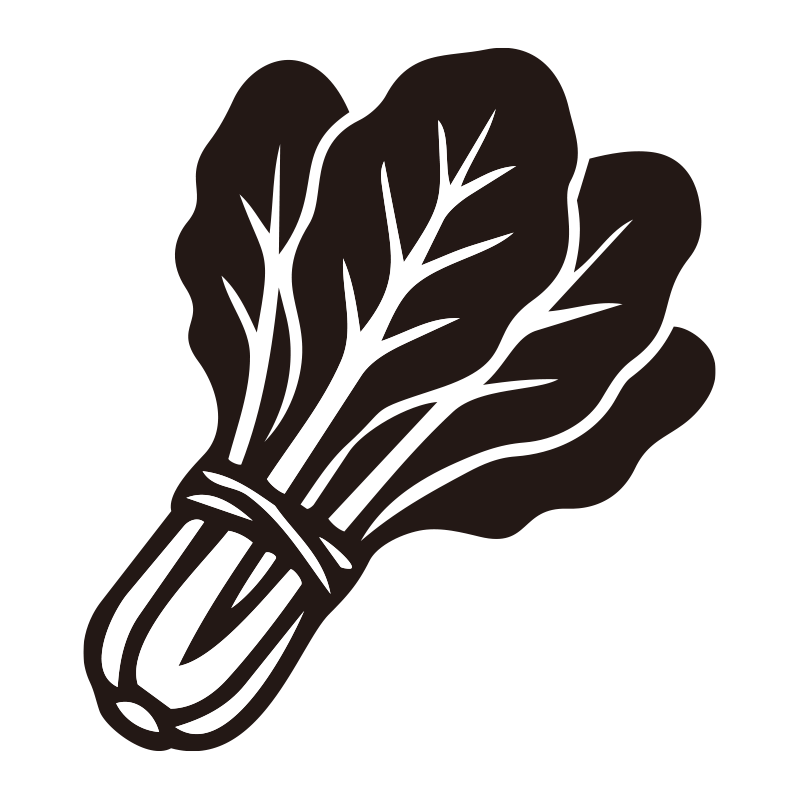 ほうれん草を描いたシンプルなモノクロシルエットアイコンです。視認性の高いミニマルなデザインで、背景透過PNG形式のため、資料やWebサイト、SNSの図解などへ即座に配置可能。ロゴやスタンプ素材としても汎用性が高く、媒体を問わずスタイリッシュに馴染みます。