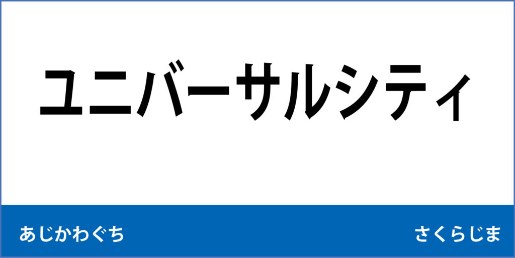 Rゆめ咲線駅名標「ユニバーサルシティ駅」のアイコンです。