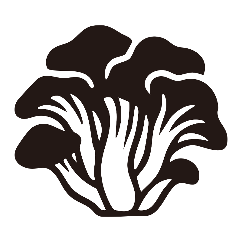 しめじを描いたシンプルなモノクロシルエットアイコンです。視認性の高いミニマルなデザインで、背景透過PNG形式のため、資料やWebサイト、SNSの図解などへ即座に配置可能。ロゴやスタンプ素材としても汎用性が高く、媒体を問わずスタイリッシュに馴