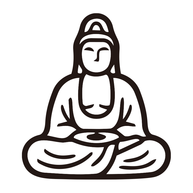 観音像を描いたシンプルなモノクロシルエットアイコンです。視認性の高いミニマルなデザインで、背景透過PNG形式のため、資料やWebサイト、SNSの図解などへ即座に配置可能。ロゴやスタンプ素材としても汎用性が高く、媒体を問わずスタイリッシュに馴染みます。