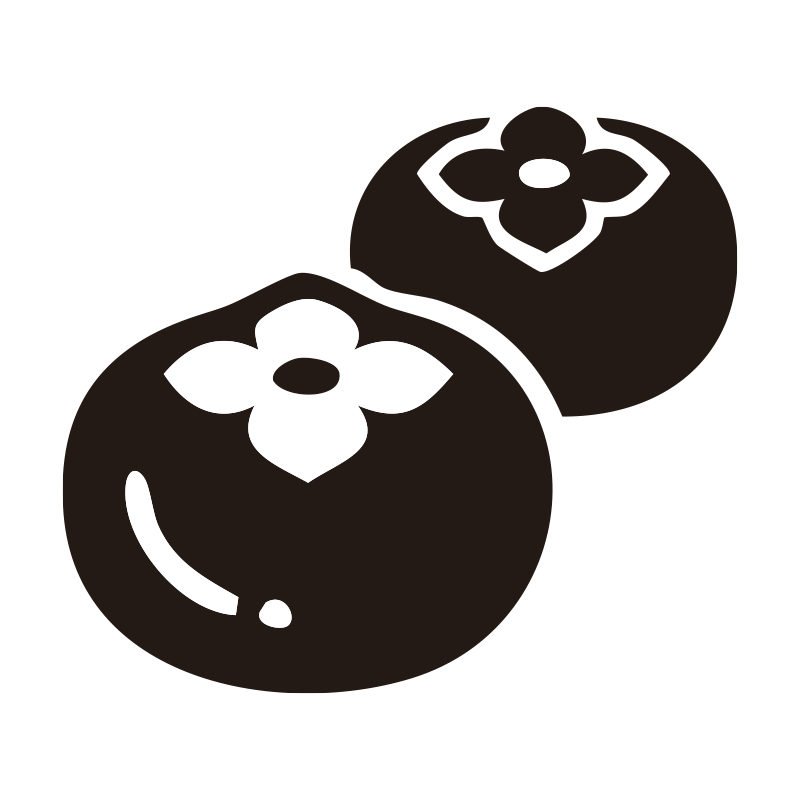 柿を描いたシンプルなモノクロシルエットアイコンです。視認性の高いミニマルなデザインで、背景透過PNG形式のため、資料やWebサイト、SNSの図解などへ即座に配置可能。ロゴやスタンプ素材としても汎用性が高く、媒体を問わずスタイリッシュに馴染みます。