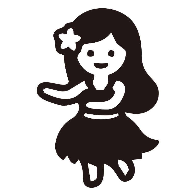 フラガールの特徴を捉えた、洗練されたシルエットアイコンです。無駄を削ぎ落としたミニマルな黒一色のデザインで、背景透過PNG形式のため、資料やWebサイトのどんな