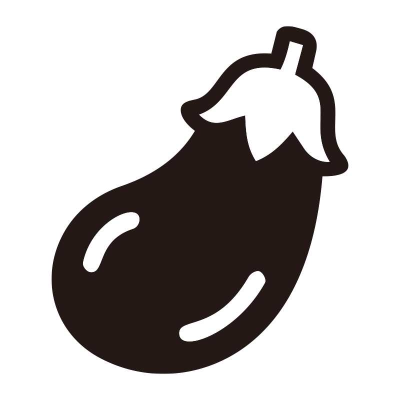 なすを描いたシンプルなモノクロシルエットアイコンです。視認性の高いミニマルなデザインで、背景透過PNG形式のため、資料やWebサイト、SNSの図解などへ即座に配置可能。