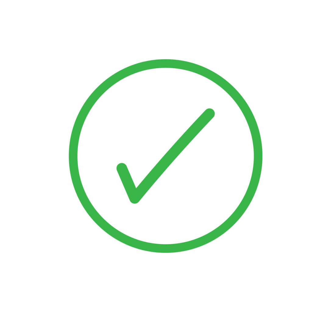 緑色のシンプルなチェックマーク(OK・確認・正解・check mark)アイコン素材です。Webサイト、SNS投稿、プレゼン資料、チラシやPOP、掲示物など幅広い用途で使える汎用デザインです。リストやボタン、承認・完了マークとしても活用でき、透過PNGにも対応しています。