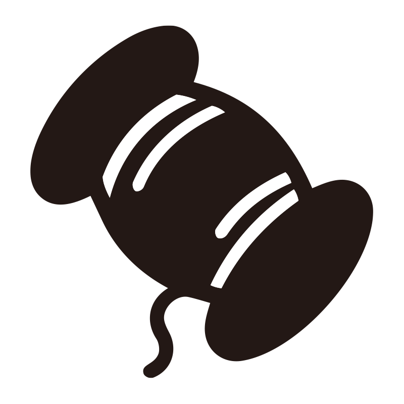 糸を描いたシンプルなモノクロシルエットアイコンです。視認性の高いミニマルなデザイン で、背景透過PNG形式のため、資料やWebサイト、SNSの図解などへ即座に配