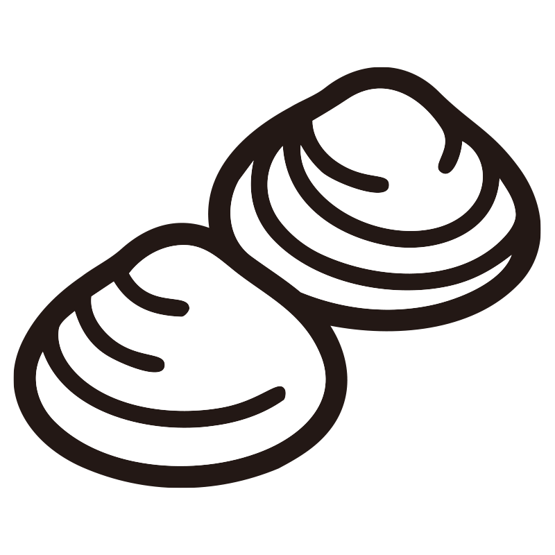 はまぐりを描いたシンプルなモノクロシルエットアイコンです。視認性の高いミニマルなデザインで、背景透過PNG形式のため、資料やWebサイト、SNSの図解などへ即座に配置可能。