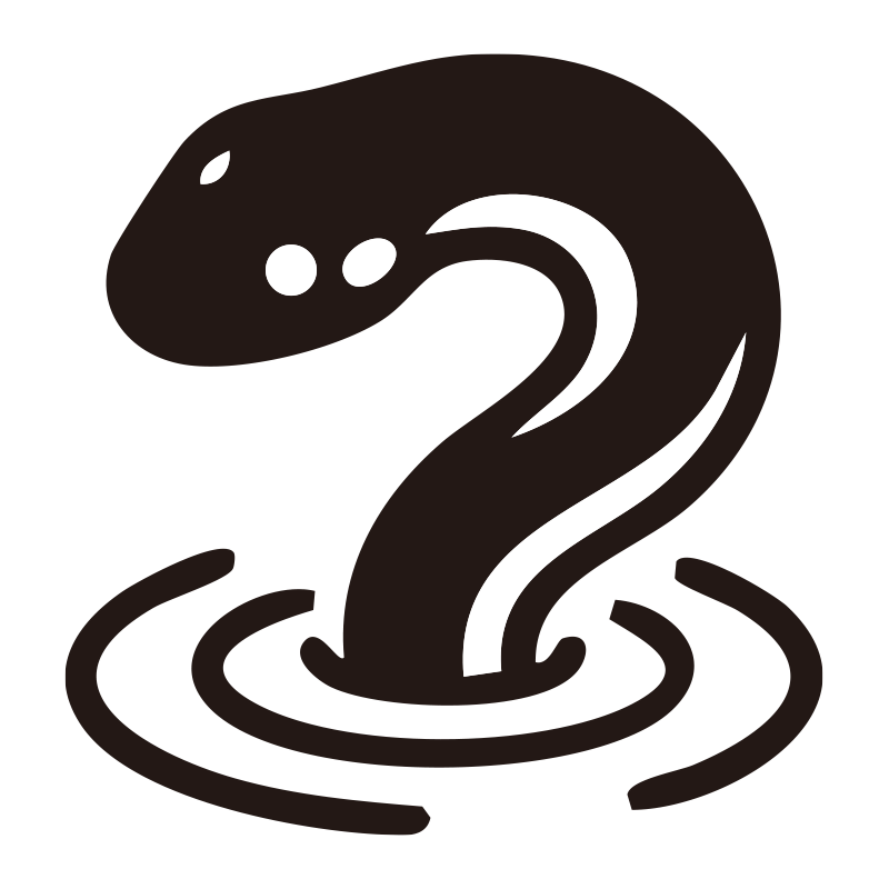 オオサンショウウオを描いたシンプルなモノクロシルエットアイコンです。視認性の高いミニマルなデザインで、背景透過PNG形式のため、資料やWebサイト、SNSの図解などへ即座に配置可能。 ロゴやスタンプ素材としても汎用性が高く、媒体を問わずス