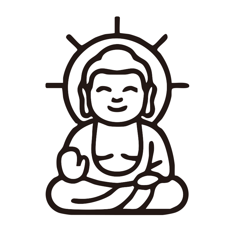 大仏を描いたシンプルなモノクロシルエットアイコンです。視認性の高いミニマルなデザイで、背景透過PNG形式のため、資料やWebサイト、SNSの図解などへ即座に配置可能。