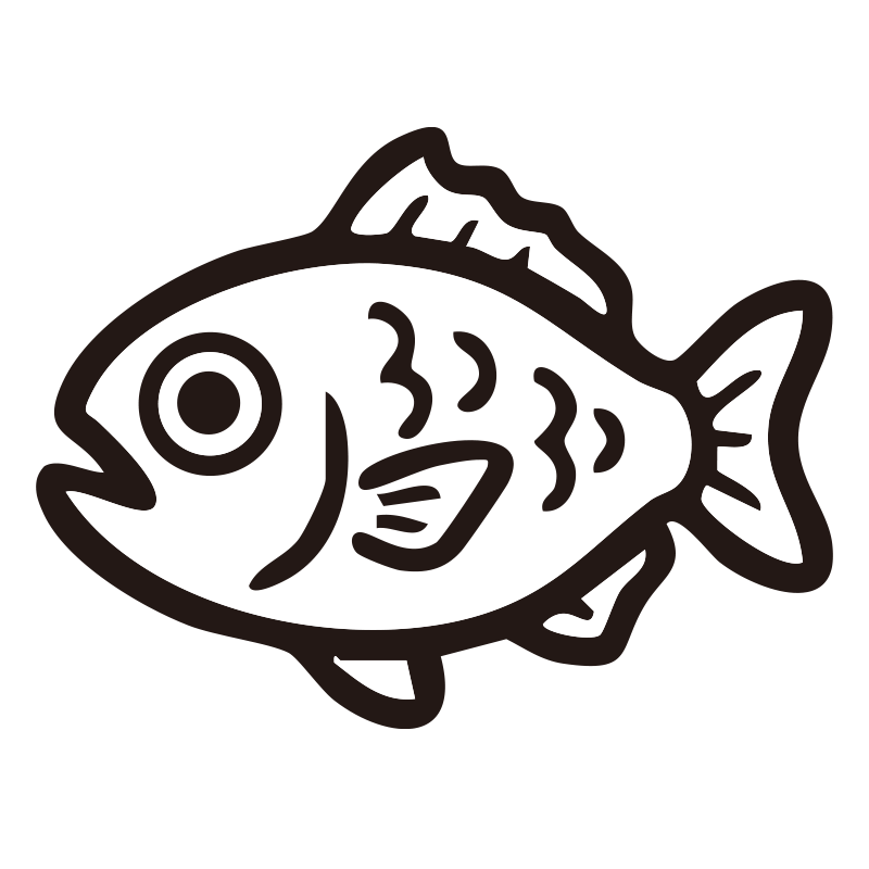 たいを描いたシンプルなモノクロシルエットアイコンです。視認性の高いミニマルなデザインで、背景透過PNG形式のため、資料やWebサイト、SNSの図解などへ即座に配置可能。