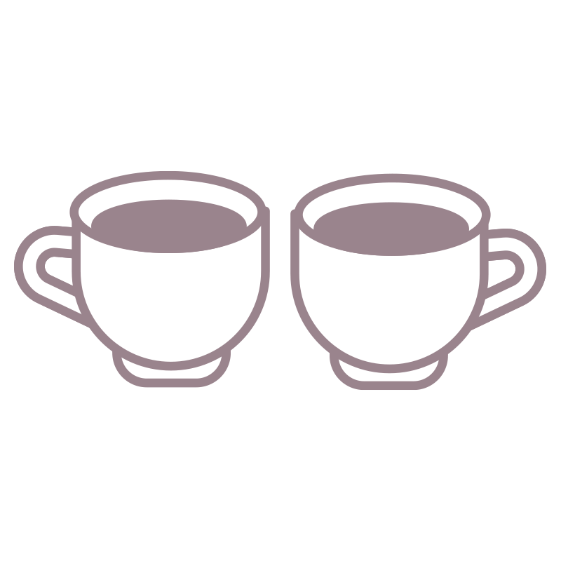 ペアカップを描いた、手書き風の温かみがあるカラーアイコンです。優しいタッチのイラストで、背