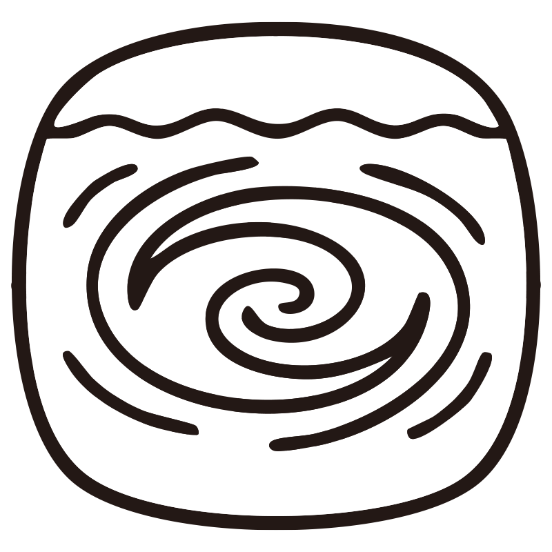 うずしおを描いたシンプルなモノクロシルエットアイコンです。視認性の高いミニマルなデザインで、背景透過PNG形式のため、資料やWebサイト、SNSの図解などへ即座に配置可能。