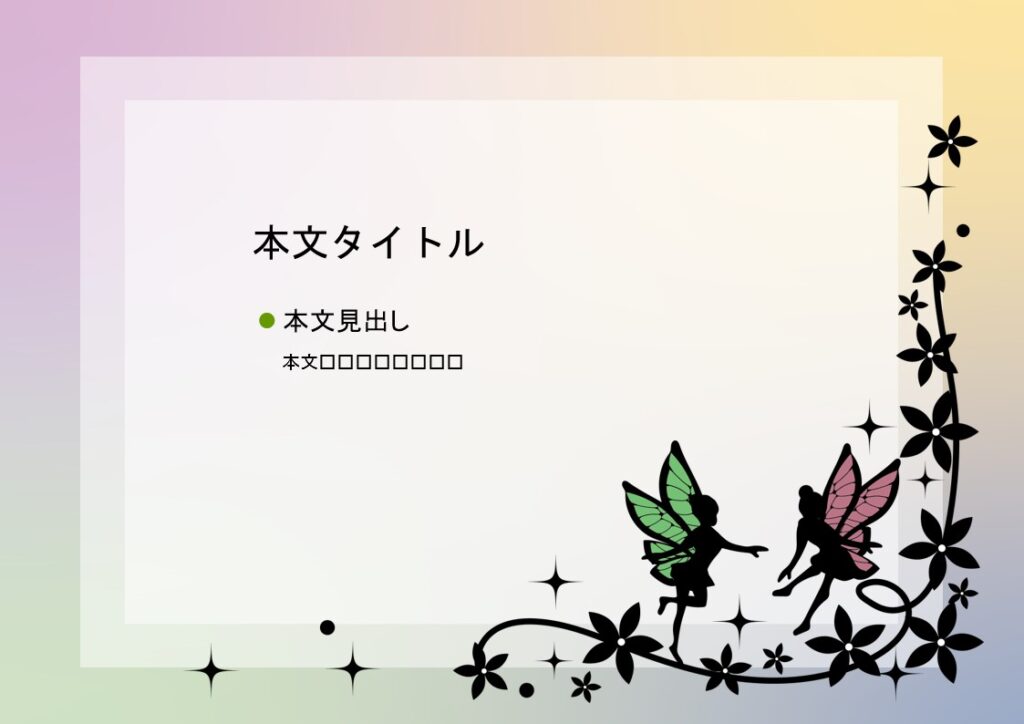 女子校の文化祭や学園祭の資料作りにおすすめ!かわいい妖精のイラスト入りパワーポイントのテンプレートです。