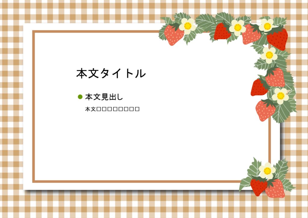 イベントやお祭りなどで使える!いちごのイラストがかわいいパワーポイントのテンプレートです。